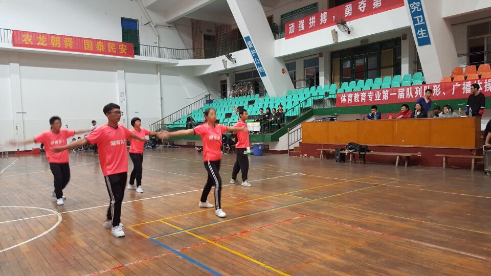 本次比赛分为队列队形和广播体操展示两个环节。体育教育专业有60名员工参赛,比赛分为12个小组进行。2015级5组获得一等奖;2016级7组、2015级4组分获二等奖;2015级1组、2015级2组、2016级12组分获三等奖。