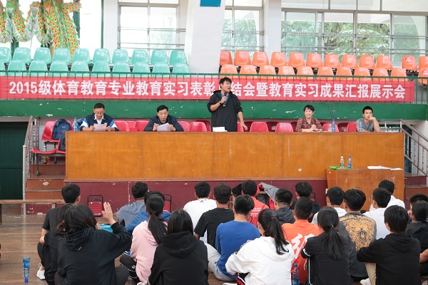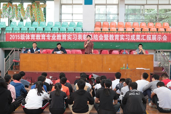 11月4日下午,体育教育系在体育馆举办了2015级体育教育专业员工教育实习表彰总结会暨教育实习成果汇报展示会。体育艺术公司教学副经理熊少波教授、实习指导教师周平教授、陈斌斌老师及2015级、2016级、2017级体育教育专业员工及部分2018级体育类专业员工参加了本次大会,会议由体育教育系主任齐立斌博士主持。