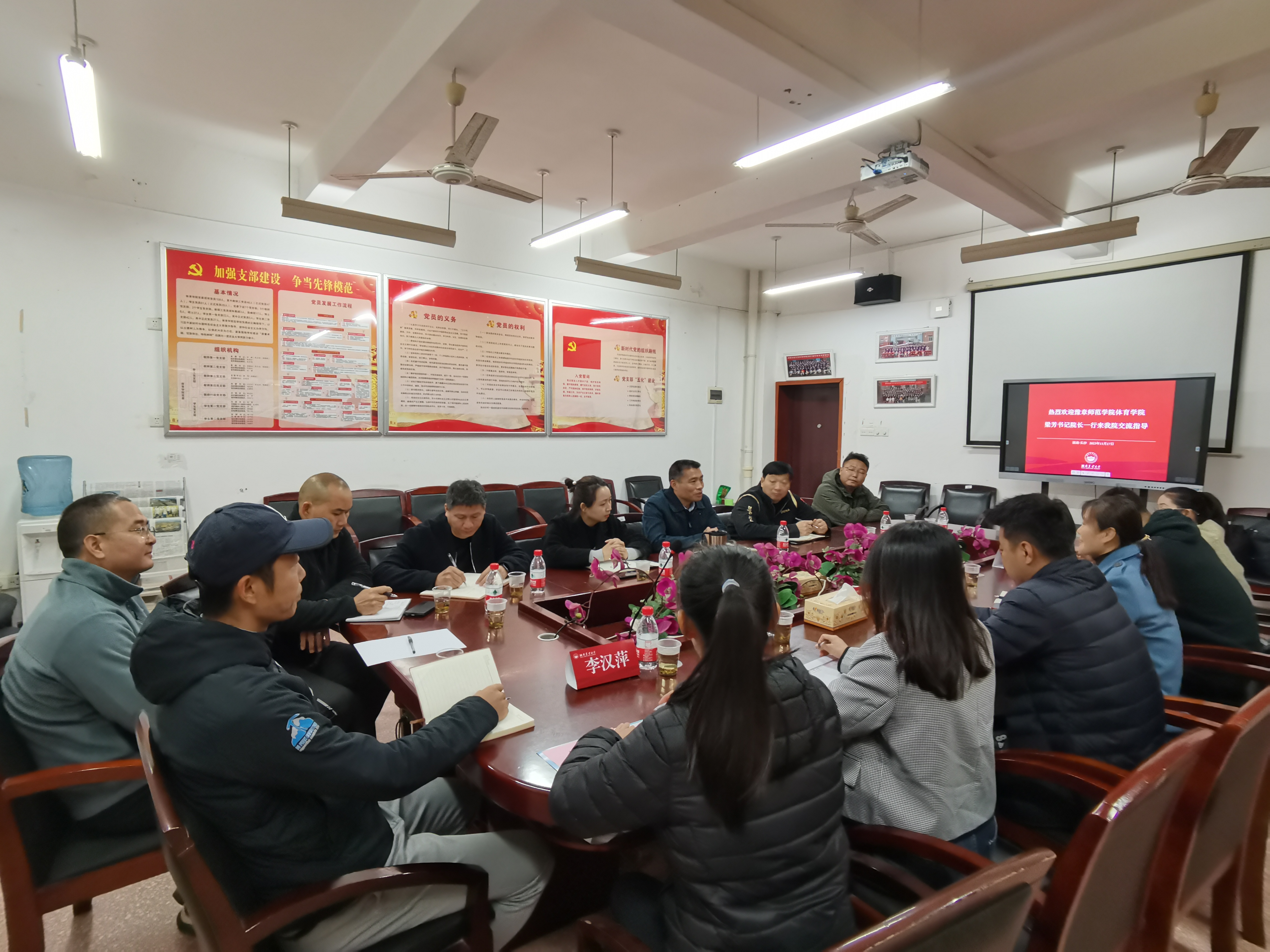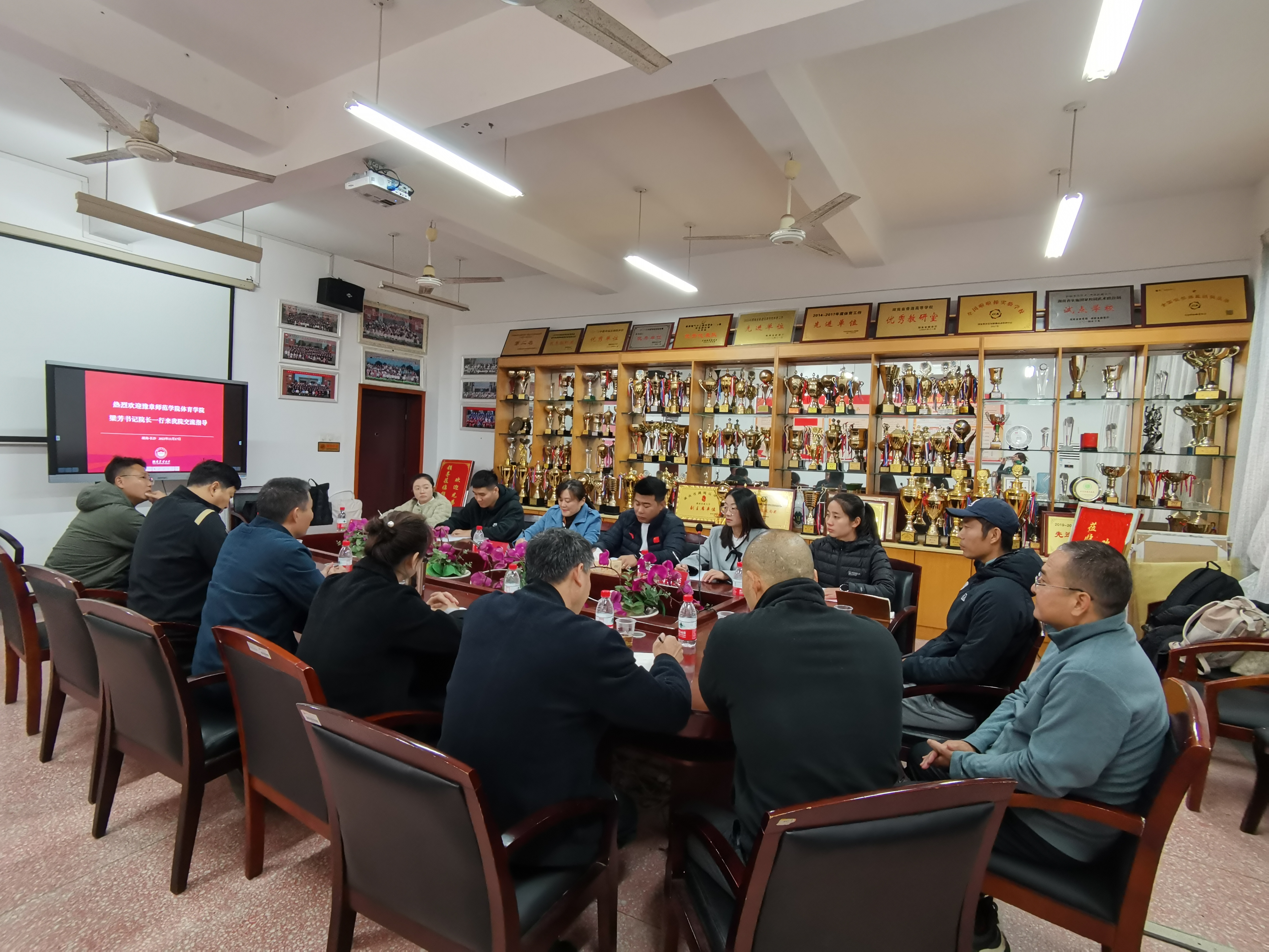 2023年11月17日,豫章师范公司vsport书记经理梁芳一行6人来公司就社会体育指导与管理等专业建设展开调研。公司经理曹庆荣、副经理熊少波、副经理刘周敏及系部主任、任课教师参加了会议。