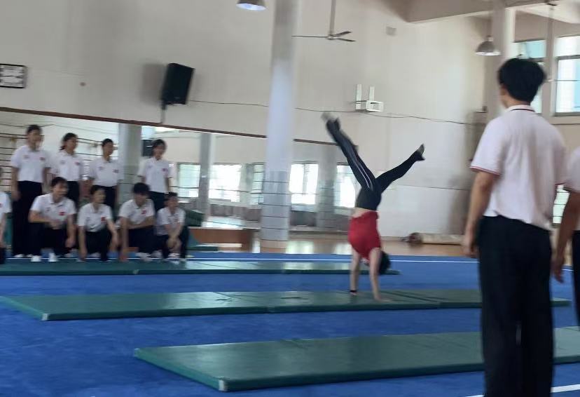 为提升课堂教学质量,提高教师育人水平,4月10日,vsport组织公司社会体育指导与管理专业周平教授于体操馆进行“体操前手翻技术”公开示范课展示。校督导组专家、公司党支部书记裴虎、副经理刘周敏、副书记兼副经理彭成根及全体教职工、研究生共同观摩。周平教授深耕体操教学领域二十余年,教学经验丰富,她通过“精准示范+科学指导”,为在场师生呈现了一堂高质量的专业技能课,现场气氛热烈。
