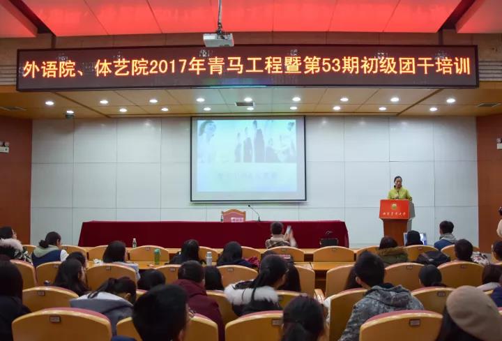 为提高团学干部的思想政治素质和工作能力,培养团学干部“刻苦学习、勤奋工作、勇于创新、自觉奉献”精神,增强团学组织的凝聚力,充分发挥团学干部模范带头作用,结合vsport胜利因您更精彩共青团工作的实际情况,体育艺术公司、外国语公司团委员工会于2017年12月9日在八教学海厅、九教北401教室召开第53期初级团干培训。主持人为体育艺术公司艺术团主持队员周东铉。参与嘉宾分别是体育艺术公司团委书记陈音竹、外国语公司团委书记陈熙,讲座对象是院团学干部及各班长团支书。
