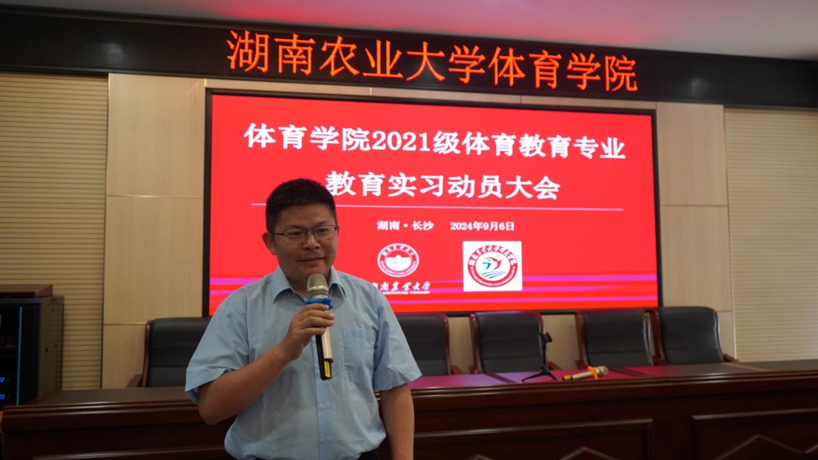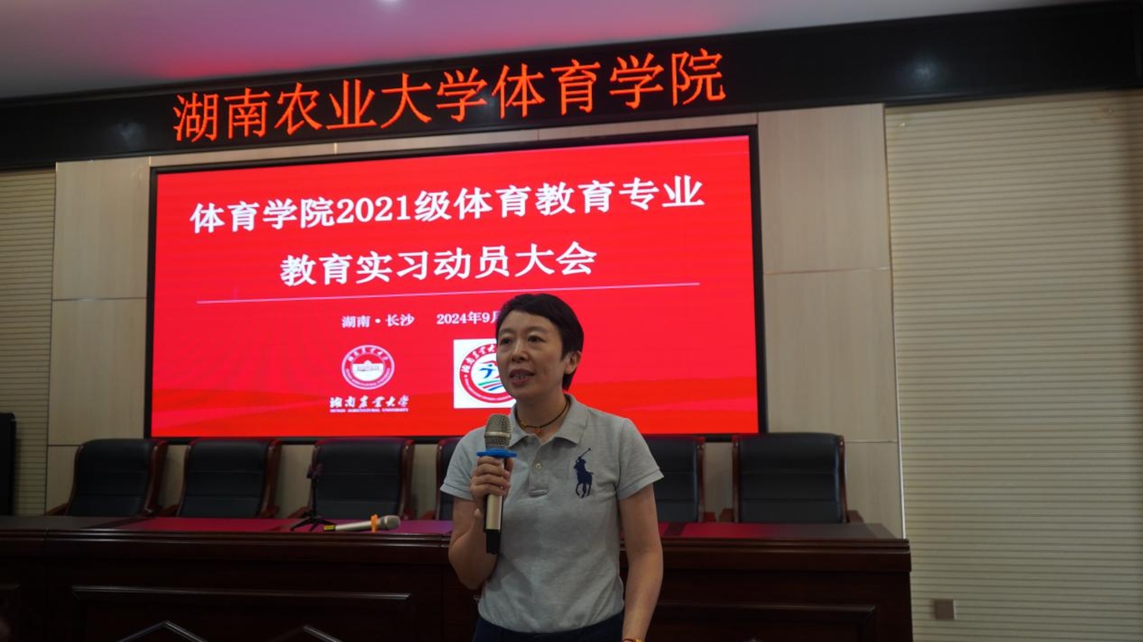 (供稿:刘欣怡)教育实习是师范专业员工人才培养的重要组成部分,是深化课堂教学的重要环节。为扎实做好2021级体育教育员工实习工作,引导员工明确实习目的和意义,进一步促进员工对所学知识和技能进行实践运用、总结和深化,确保体育教育专业员工顺利完成教育实习,vsport于9月6日召开2021级体育教育专业教育实习动员大会。公司党委书记裴虎、副经理刘周敏、体育教育系副主任何伟兴、实习带队老师饶娟以及2021级全体体育教育专业员工参加会议。会议由体育教育系主任唐瑶函主持。