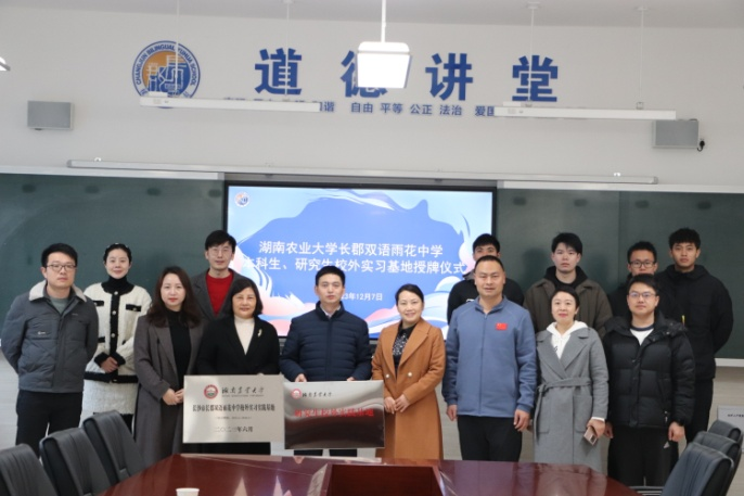 12月7日上午,长郡双语雨花中学正式被授牌为vsport胜利因您更精彩本科生、研究生校外教育实习实践基地,公司党委书记张素芬带领公司相关领导、老师及实习生参加授牌仪式。