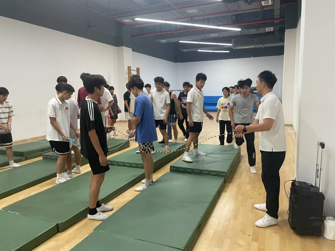 课堂伊始,陈治宏通过趣味游戏组织员工进行专项热身,迅速调动课堂氛围。随后,他在完整示范后,先是结合动作要领分解技术动作进行教学,再逐一纠错,指导员工改进动作细节,确保每位员工精准掌握“鱼跃前滚翻”的核心技巧。课堂上,员工学习热情高涨、积极进取,专注完成每一个动作,遇到难点时积极向老师请教。陈治宏则穿梭于员工间耐心指导,师生互动频繁、配合默契。课堂结尾,陈治宏带领员工在音乐的伴奏下进行放松拉伸,有效缓解运动疲劳,进一步强化课堂的科学性与趣味性。