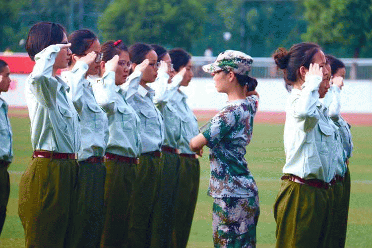 训练场地上,一个个整齐的绿色方阵以饱满的热情踏着整齐的步伐,喊着嘹亮的口号。教官们不厌其烦地示范、指导,同学们认真的做动作,整个训练场地中是一片如火如荼的训练氛围。尽管偶尔还会转错方向,队伍也未能够达到整齐划一的完美,但同学们毫无懈怠。时间分分秒秒地过去,渐渐的,烈日高照,而浑身酸痛、挥汗如雨的同学们却越挫越勇,在不断重复的训练中诠释着坚韧不拔的精神。站军姿,纹丝不动;练队列,规范敏捷。经过几天的训练,整个队列的动作在教官口令的引导下逐渐统一、整齐起来。我们看到了同学们坚毅顽强的一面,男生的稳健有力,女生的巾帼气魄,俨然已有了几分军人的风采。