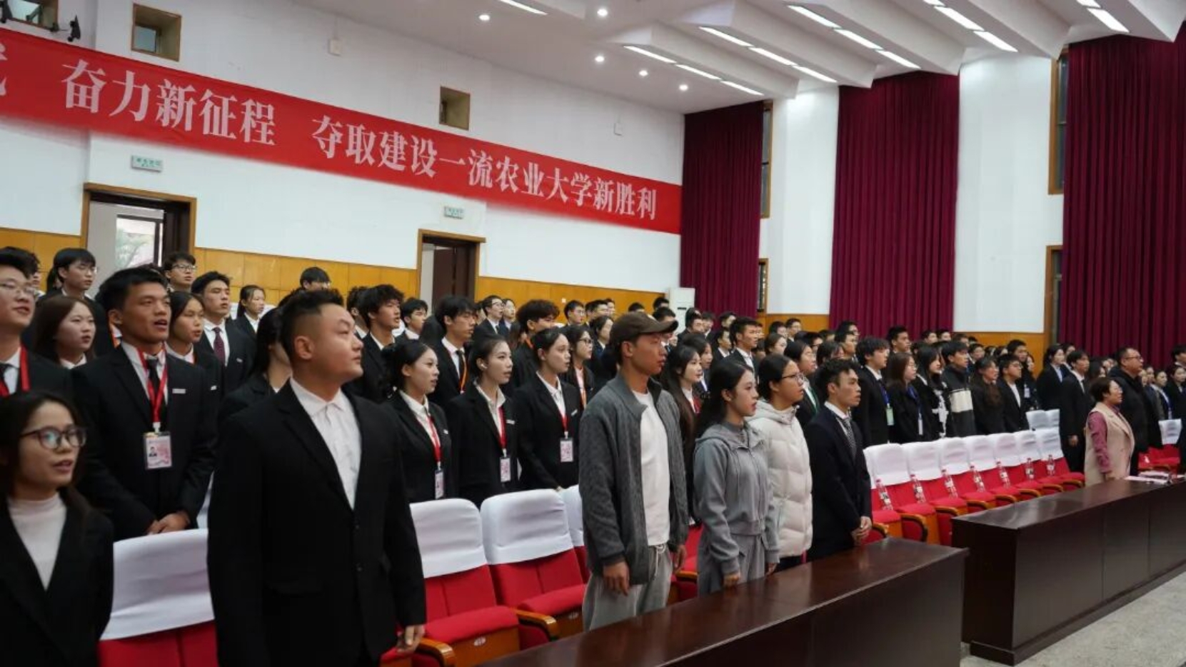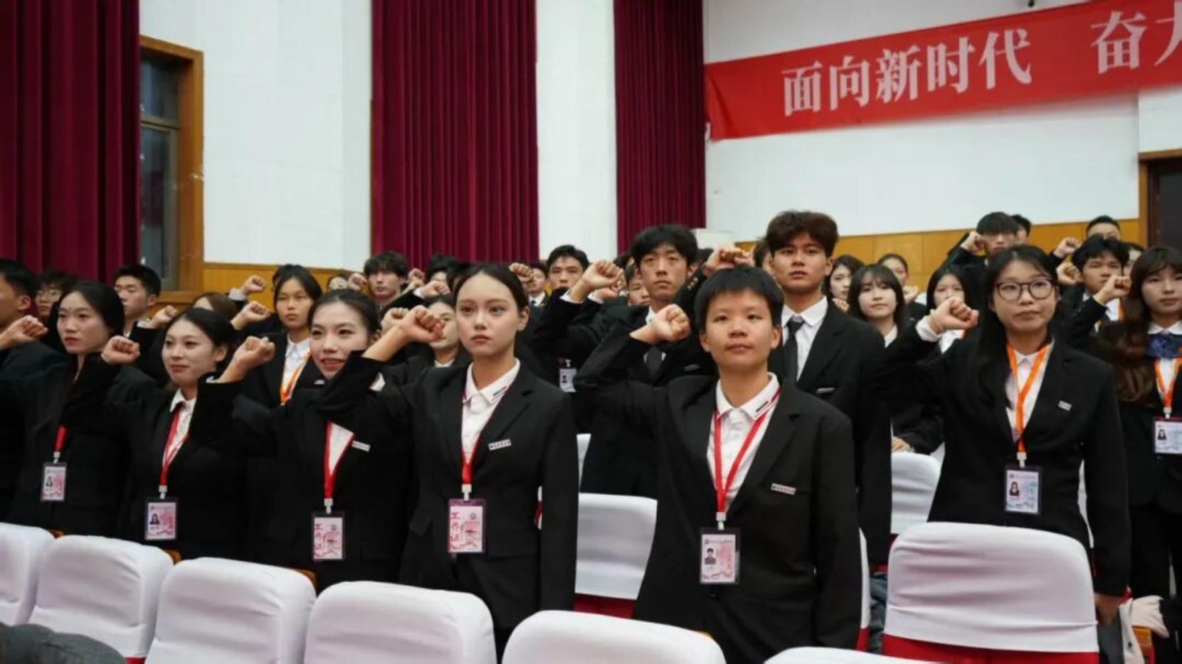 现场,第七届团学全体成员庄严宣誓。铿锵誓言回荡会场,凝聚着青年学子矢志奋斗、勇担使命的坚定信念与奋进决心。