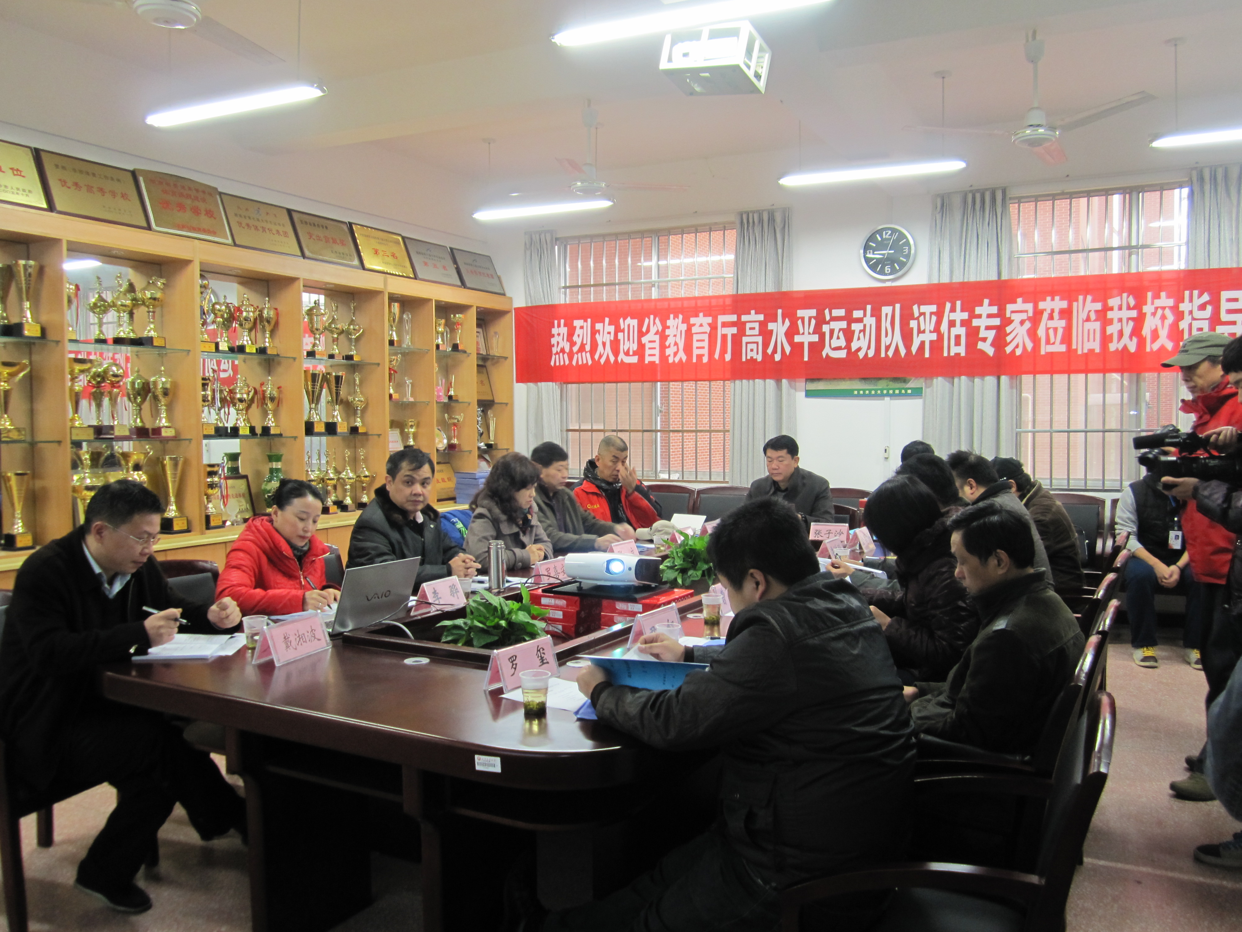 12月18日上午,根据湖南省教育厅612号文件《关于对湖南省普通高等公司高水平运动队进行检查的通知》,湖南师范大学孙洪涛教授,国防科技大学王童教授,湖南大学张子沙教授,湖南师范大学金育强教授,湘潭大学熊茂湘教授,省教育厅潘洪飚老师一行六人组成的专家组,来到公司进行高水平运动队评估。参与评估的还有张立副董事长、公司领导以及公司各职能部门领导。