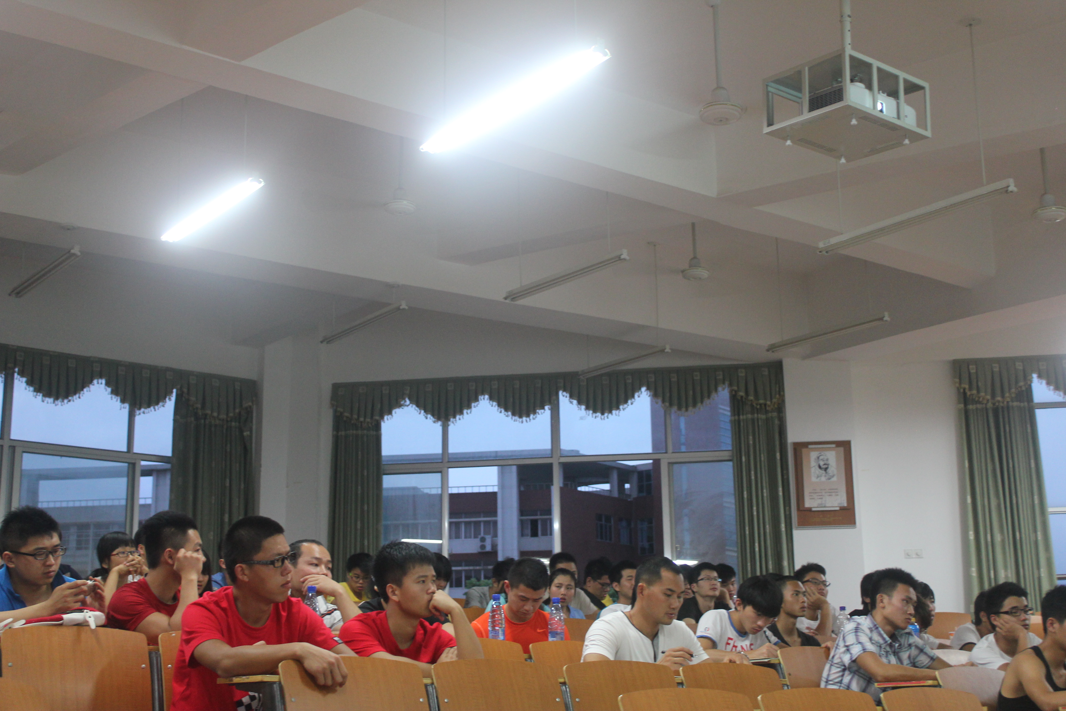 2013年6月2日19:30 ,社会体育指导与管理系特邀“70KG健美冠军;中国健身十佳CEO,湖南健身联盟负责人,中国国际体育博览会特邀讲师;湖南12家健身会所荣誉顾问和成都堡格莱斯、力德健身有限公司投资人”唐惠林先生。为公司体育专业的学子们带来了主题为“健身行业未来的发展趋势”的讲座。本次讲座由社体系副主任谭金飞主持,讲座现场激情互动、精彩纷呈!