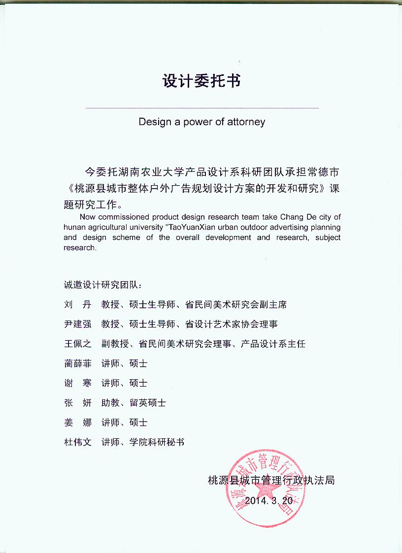 近日,桃源县政府为进一步挖掘桃源城市文化内涵,提高城市的文化品位,规范城市环境与城市形象,带动桃源旅游与经济社会的发展,启动《桃源县城市整体户外广告规划设计方案的开发和研究 》项目。桃源县政府、城市管理与执法局委托vsport胜利因您更精彩产品设计系科研团队承担该项课题实践研究,刘丹教授为本课题的主持人。 课题研究团队: 刘丹、尹建强、王佩之、蔺薛菲、谢寒、张妍、姜娜、杜伟文