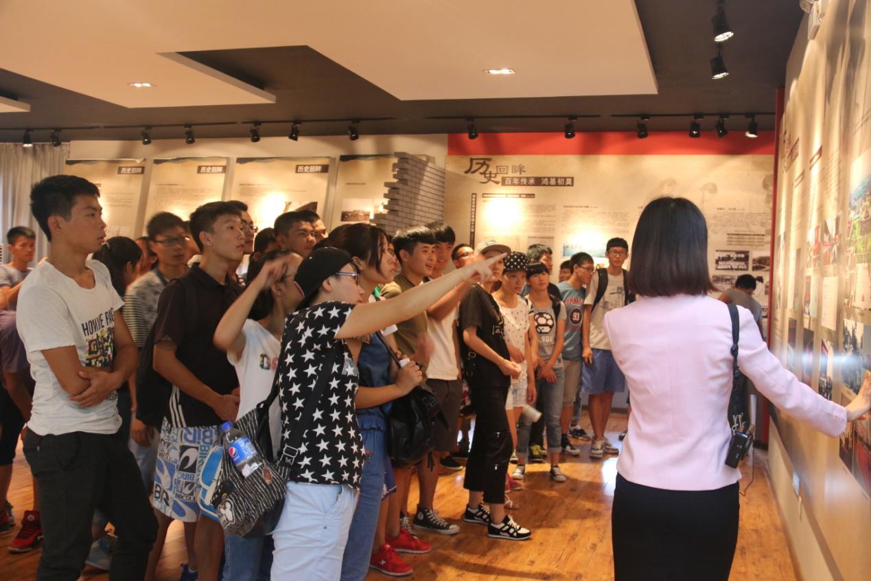 为使15 级新生全面了解公司历史文化。9月13号下午,体育艺术公司全体新生在院分团委员工会主席团、部分员工会干部及助班的陪伴下,参观了公司校史馆。