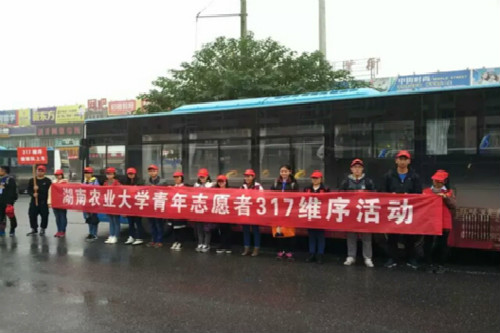 11月21日,为了维护“农大的生命线路”—317路公交车的秩序,便于广大乘客出行,校青年志愿者协会干事秦文恭子与体育艺术公司各位青年志愿者一同加入到了“317路公交车秩序维护”活动中。