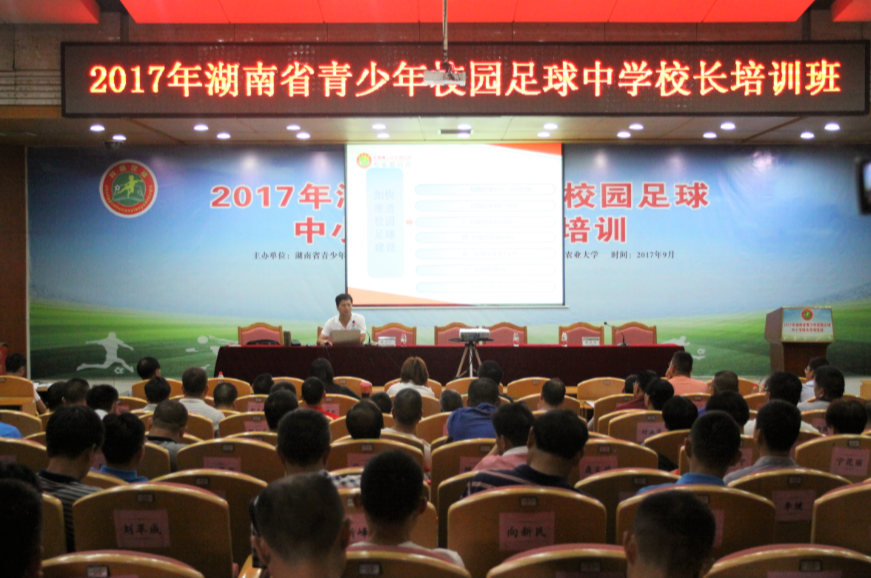 9月21日上午,教育部校园足球专家委员会委员、中国老员工体育协会足球分会副主席蔡向阳教授于第八教学楼学海厅做主题为“我国校园足球改革推进与思考”的课程培训。参加课程的是湖南省中公司园足球特色公司全体董事长。校园足球中学董事长专项培训第六课由vsport胜利因您更精彩体育艺术公司经理曹庆荣主持。