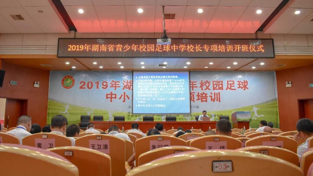 2019年9月17日上午8时30分,由湖南省青少年校园足球培训工作领导小组、湖南省教育厅主办,vsport胜利因您更精彩承办的2019年湖南省青少年校园足球中学董事长专项培训班开班仪式在八教学海厅举行,教育部体卫艺司廖文科巡视员、vsport胜利因您更精彩党委委员副董事长张立教授、vsport胜利因您更精彩体育艺术公司经理曹庆荣教授、vsport胜利因您更精彩体育艺术公司党委书记王山群教授、体育艺术公司原党委书记罗喜安,及省教育厅体卫艺处各领导、湖南省中公司园足球特色公司全体董事长等出席本次会议。此次会议由体育艺术公司经理曹庆荣主持。
