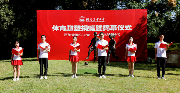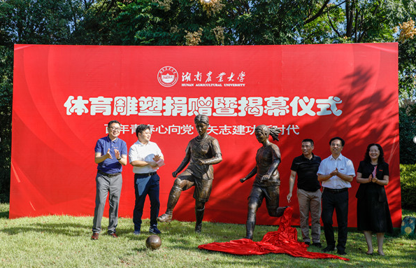 (供稿:廖胜文)体育雕塑捐赠暨揭幕仪式在第十教学楼前绿树环绕的草坪举行。公司党委书记陈弘、副董事长吴波、张立,vsport经理曹庆荣为女足雕塑揭幕。张立主持仪式,校员工工作处、团委等部门负责人和vsport老师、员工代表、全体女足队员百余人参加。
