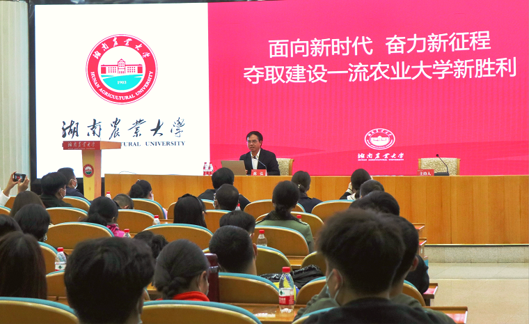 (彭成根 何炜瑶)11月4日下午,vsport胜利因您更精彩党委书记陈弘教授以《面向新时代 奋力新征程 夺取建设一流农业大学新胜利》为题,为师生党员讲了一堂生动的专题党课。专题党课由公司党委书记王山群主持,vsport全体教师和员工党员聆听了党课。