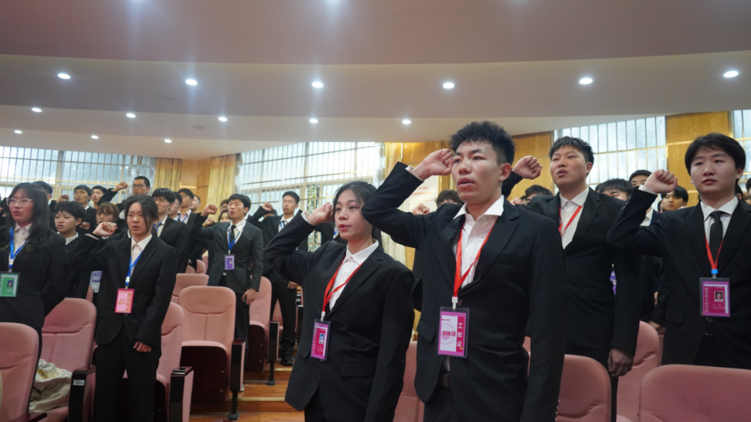 大会在共青团团歌的旋律中拉开序幕,曹庆荣宣读公司第四届团学组织负责人名单,彭成根宣读第四届团学组织志愿者名单,在场领导为部门负责人颁发了聘书。