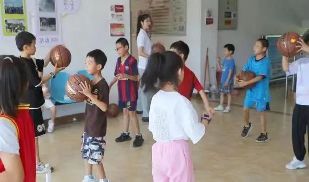 面对低年级的小朋友,教学内容设计以游戏为主,化简为宜,以球为主,定下基调,运用简单的路线、少量的器材,进行抛接球练习、击地传球练习,将教学内容融进游戏中,在活跃的课堂氛围下学习、成长。