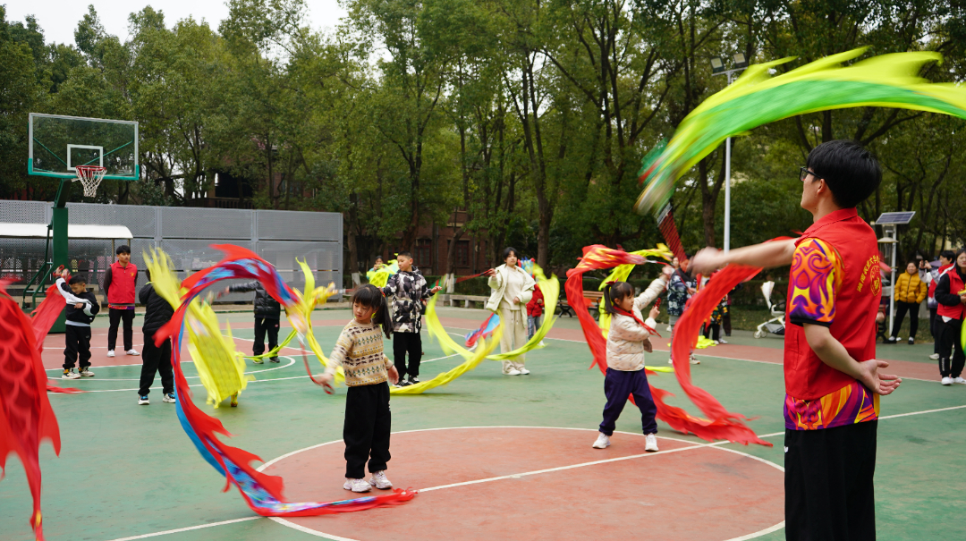 活动中,志愿者们一对一对小朋友们进行一些彩带龙简单动作的教学,包括左右摆荡、绕八字等,彩带龙随着“小小传承人”们的动作不断游、穿、腾、跃,左右盘旋,蜿蜒遨游……一条条色彩鲜艳的龙绸舞得虎虎生威,为社区增加了靓丽的色彩。小朋友们在体验过程中感受到了中国的龙文化的独特魅力,增强了对传统文化的认同感和自豪感,培养了文化素养和爱国情怀。
