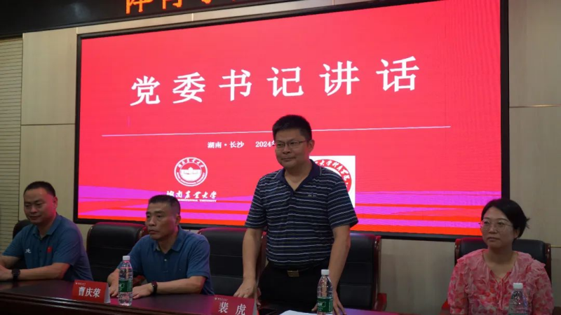 裴虎向即将出发的志愿者们致以美好的祝愿,他希望大家要坚定理想信念,志存高远,做“湘农体育精神”的传承者;要锤炼过硬本领,志坚行苦,做“湘农体育名片”的代言人;要深耕基层沃土,志写青春,做“湘农体育特质”的塑造者。