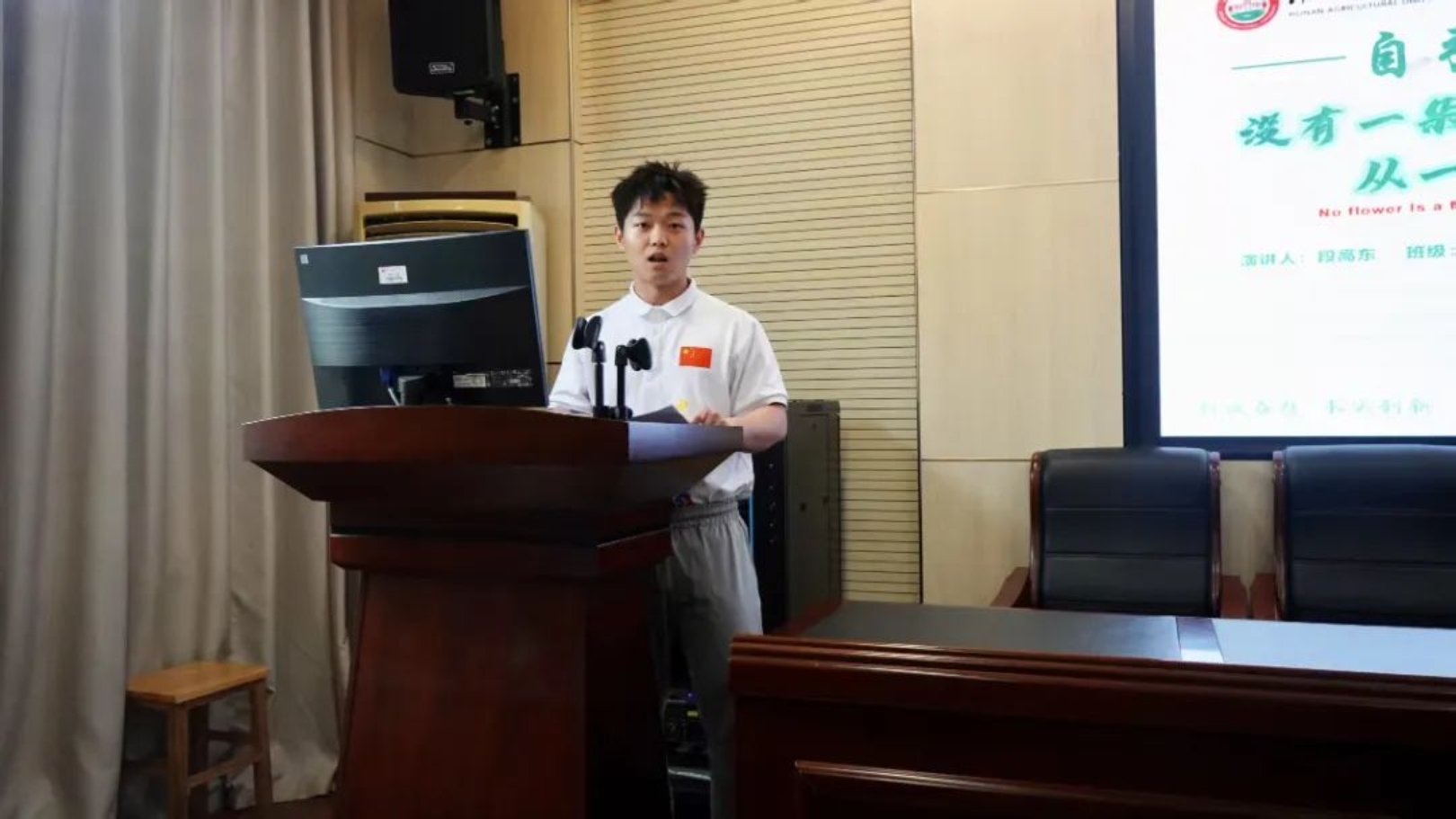 第十八届全校“自强之星”以及最佳人气奖得主周艺应邀出席,他分享了自己的参赛经验与宝贵心得。最后,团委书记周霞对七位选手的表现进行了专业细致的点评,并提出了切实可行的改进建议,为选手们指明了进一步提升的方向。