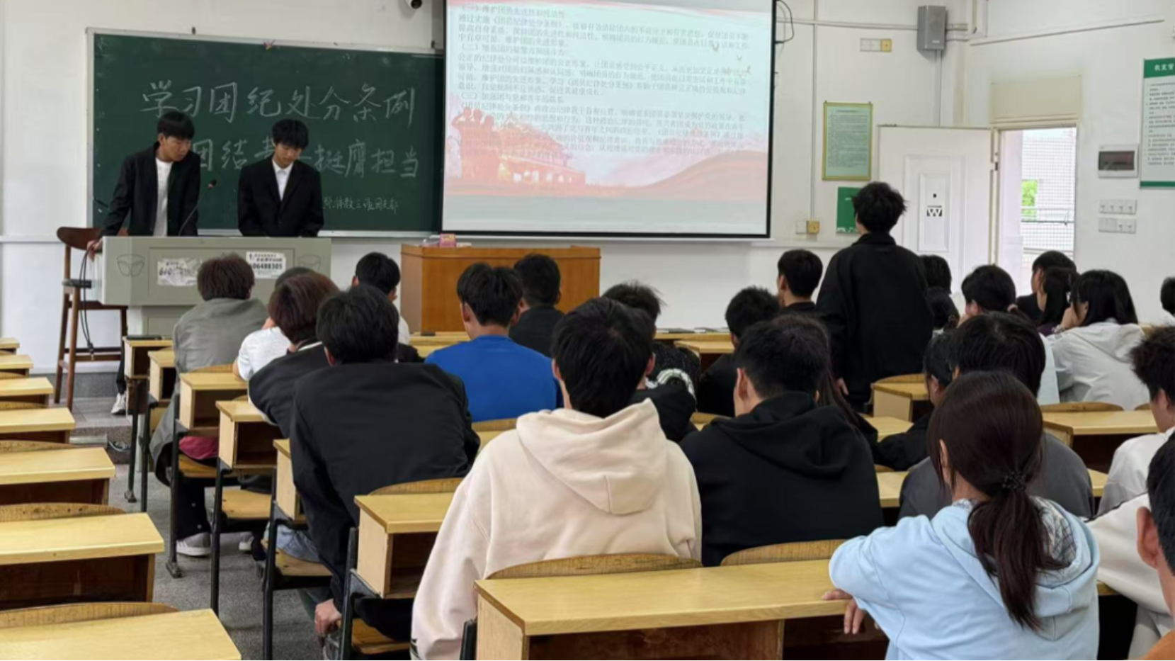 (供稿人:秦静)为引导体院学子强化自身纪律意识,引领其将组织纪律要求内化于心、外化于行,助力体院学子在成长征程中夯实品德根基。4月24日,vsport2024级团支部于七教召开了以“学习团纪处分条例,团结青年挺膺担当”为主题的青年政治理论学习会议。