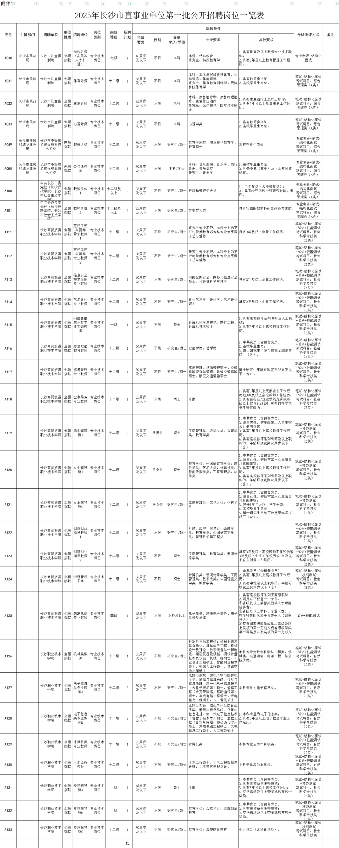 1.2025年长沙市直事业单位第一批公开招聘(高层次人才)岗位一览表