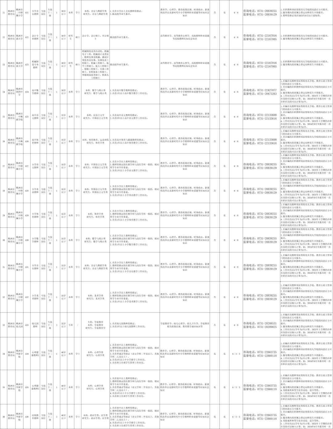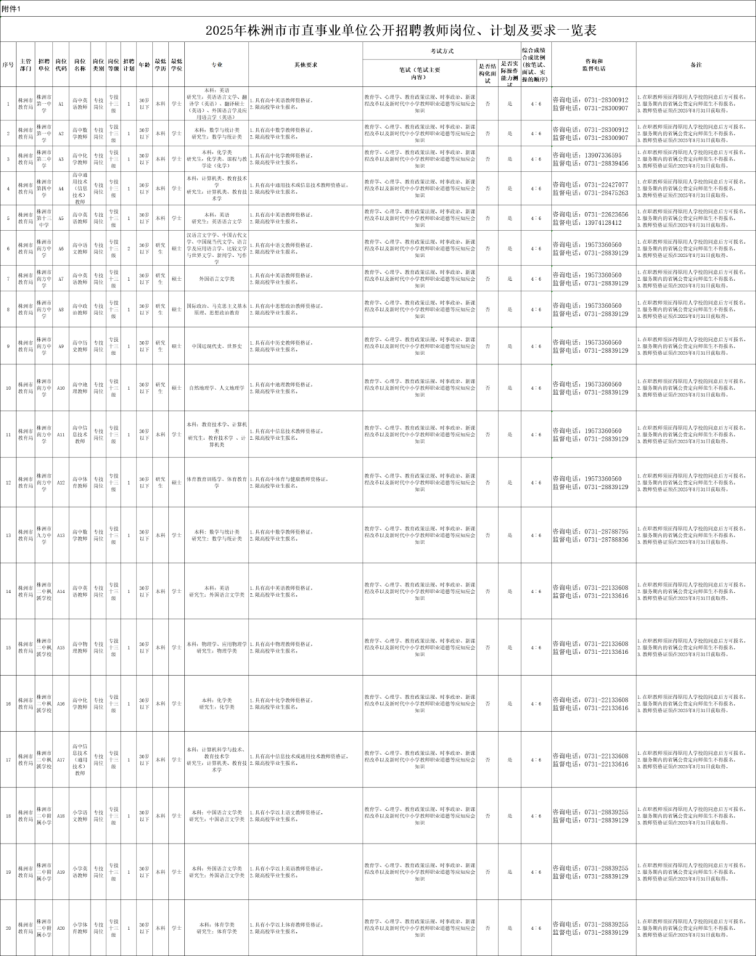 附件1 2025年株洲市市直事业单位公开招聘岗位、计划及要求一览表